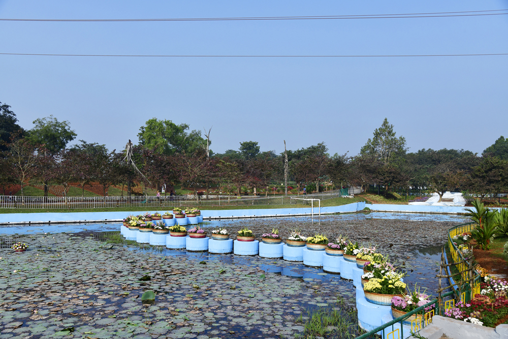 The sprawling lawns, colourful flower beds, exquisite collection of plants are major attractions for passive recreation of people belonging to different age groups. The 45 acres of lake with crystal clear water attracts in-numeral number of migratory and local resident birds like Gadwall, Little Grebe, Cormorant, Oriental Darter, Brown Crowned Night Heron, Little Green Heron, Purple Heron and Little Egret during winter and provide boating facility to the visitors in this wonderful natural setting.