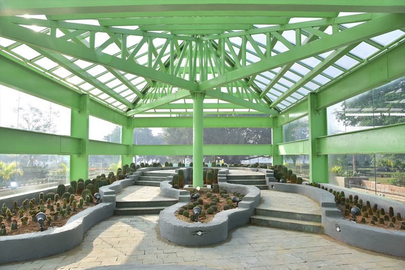 A monumental pyramid housing a rich collection of exotic Cacti and Succulents in it, is a feast for eyes. With a collection of 72 species of plants with scented flowers, the fragrance garden set up in a unique landscape is a place of learning for many. The hibicus garden has a collection of 52 varieties of hibiscus and rose garden with about 1000 varieties of hybrid-T, floribunda, polyantha and miniature roses are other attractions of the Botanic Garden.